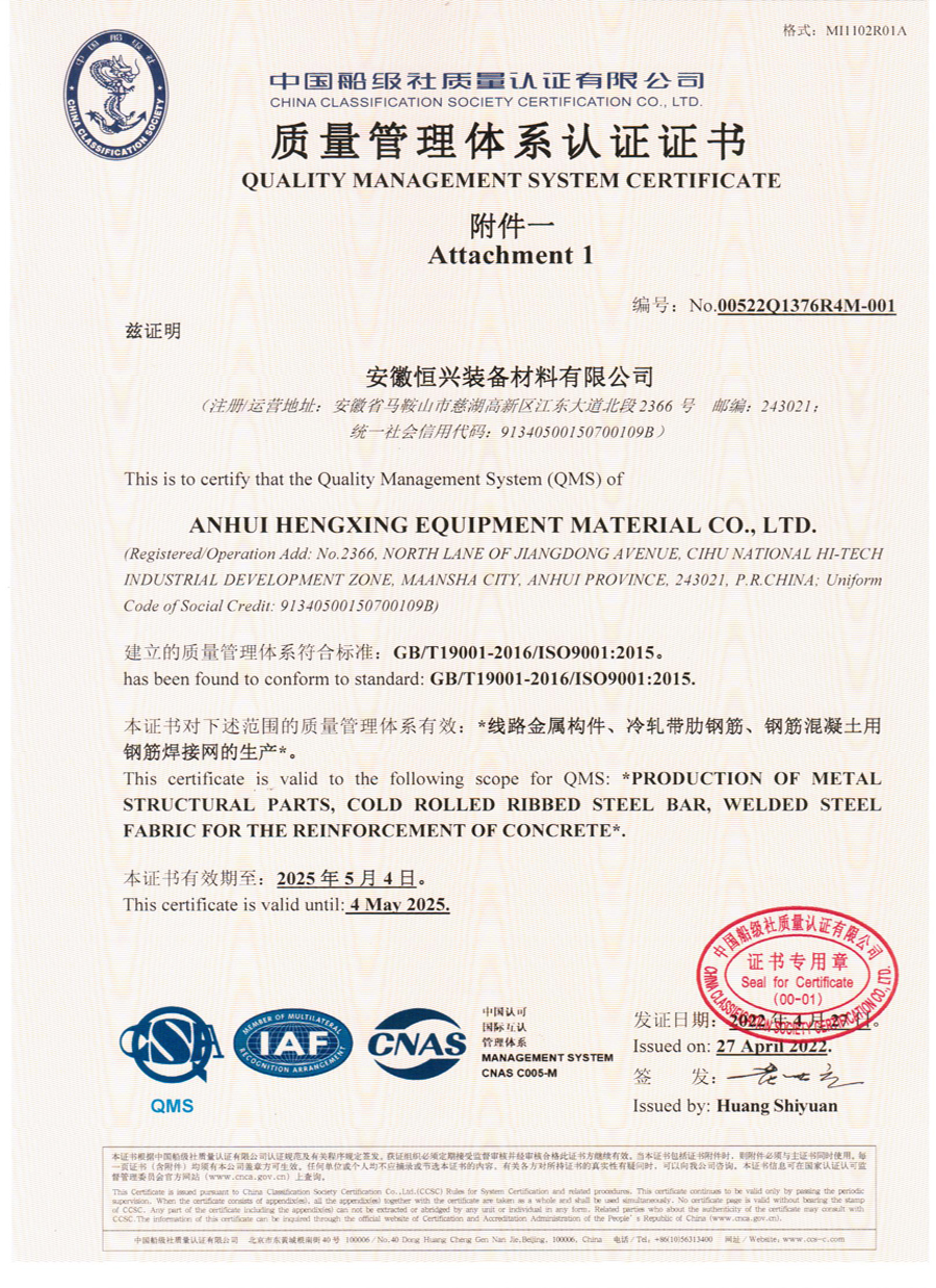 • 恒興質(zhì)量認證